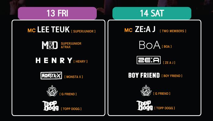 Many top K-pop artists will be performing on SGC SUPER LIVE IN MANILA. Eye of the K-pop storm, Super Junior's LeeTeuk has been selected 13th special MC for the show. And ZE:AJ’s member has been selected 14th special MC for the show . The Asia star BoA is joining SGC SUPER LIVE IN MANILA. Also WooJoo Star Kim-HeeChul and talented musician JungMo's collaboration! M&D, Super Junior's Henry, ZE:AJ, Boyfriend, 9muses, Monsta X, GFRIEND and ToppDogg is joining for a spectacular show of SGC SUPER LIVE IN MANILA.