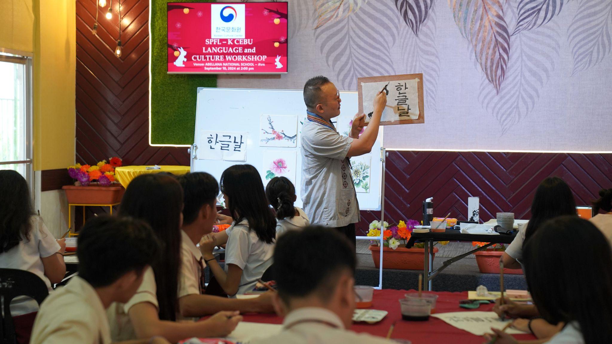 The workshops, conducted at Abellana National High School in Cebu and Francisco Bustamante National High School in Davao, gathered over 160 students and teachers. Korean Language Expert Hong Jieun, and Traditional Art Expert Yoon Dong Hyun, conducted the respective classes which provided both linguistic training and cultural immersion to attendees.