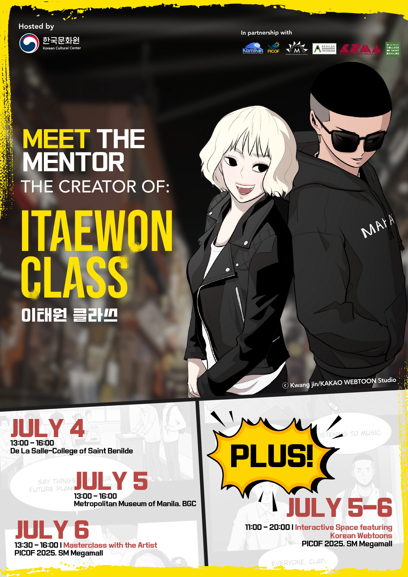 ‘Meet the Mentor: The Creator of Itaewon Class’ is hosted by the Korean Cultural Center in the Philippines, in partnership with the Philippine International Comics Festival 2025 (PICOF), Komiket, De La Salle-College of St. Benilde, and the Metropolitan Museum of Manila.