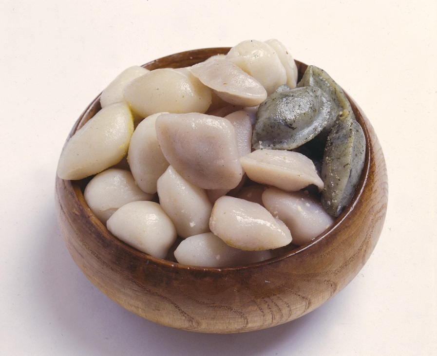 정의 멥쌀가루를 익반죽하고 풋콩, 깨, 밤 같은 소를 넣어 반달 모양으로 빚어서 시루에 솔잎을 켜켜로 놓고 찐 떡. 송병(松餠) 또는 송엽병(松葉餠)이라고도 부르며 모든 지방에서 만드는 떡으로, 추석 때 햇곡식으로 빚는 명절떡이기도 하다. 특히 추석 때 먹는 송편은 올벼를 수확한 쌀로 빚어 오려송편이라 하며, 햇곡식으로 만든 음식으로 조상께 감사하는 뜻으로 조상의 차례상과 묘소에 올린다. |