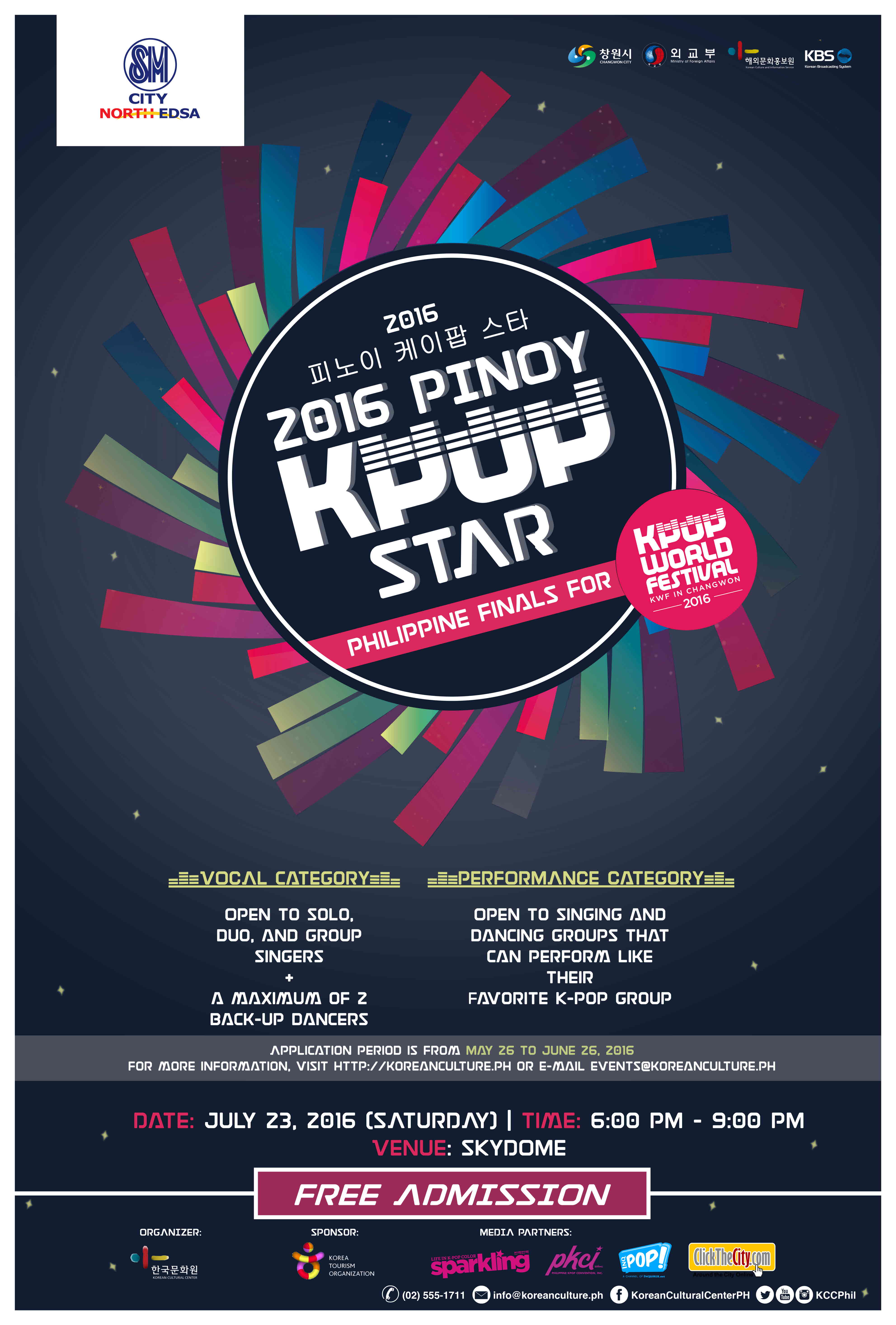 Applications for the biggest annual talent search competition for Filipino K-pop performers and cover groups begin as Korean Cultural Center in the Philippines (KCC) opens the auditions for the 2016 Pinoy K-pop Star.